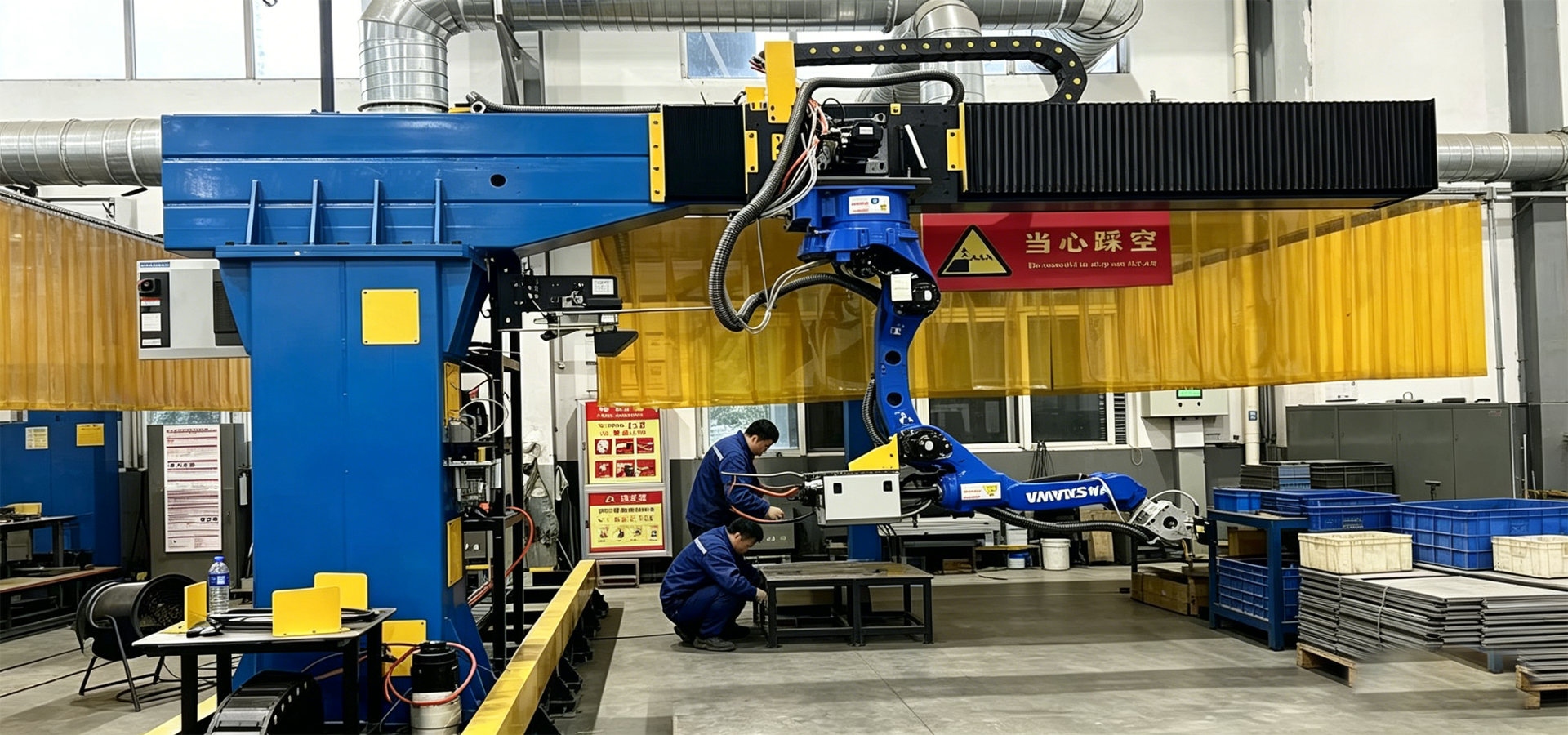 悬臂焊接工作站(悬臂式自动焊接机)是一种单侧支撑、长行程、高刚性的自动化焊接设备,主要用于长直焊缝、大型平面工件、箱体、梁类、板类构件的自动化焊接。它以单侧悬臂横梁为主体,搭载焊接机头、行走机构与控制···