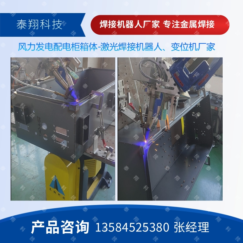 常州泰翔风力发电配电柜激光焊接机器人是一款专为风力发电配电柜制造行业设计的智能焊接设备。本激光焊接机器人工作站结合了先进的激光焊接技术和双轴平台式焊接变位机,实现多角度焊接,帮助企业提高焊接效率。设备实现快速精准焊接,适用于各种复杂结构的配电柜焊接需求。