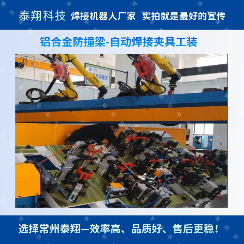 常州泰翔自动化公司的铝合金防撞梁CMT焊接工作站是一套高效、精确的焊接解决方案,专为铝合金材料的焊接而设计。该工作站采用了发那科焊接机器人,配备双枪焊接系统,能够实现高质量的焊接效果,确保焊缝均匀且强度高。